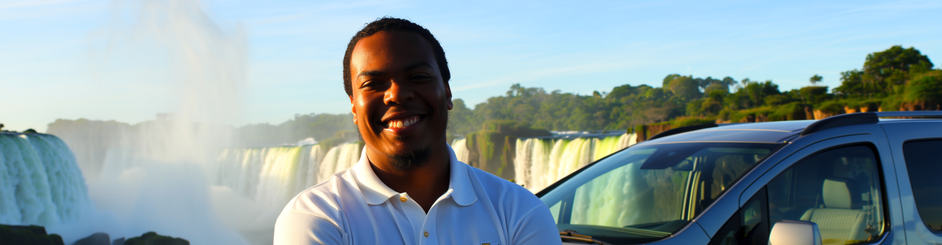 브라질 리우데자네이루 코파카바나를 따라 은색 밴이 멋진 바다 전망 옆을 달리고 있습니다